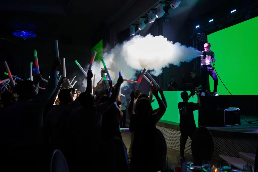 Pistolul cu CO2 de la banchet este elementul care aduce un val de energie spectaculoasă pe ringul de dans, oferind invitaților un moment epic și răcoritor, plin de fum dens.