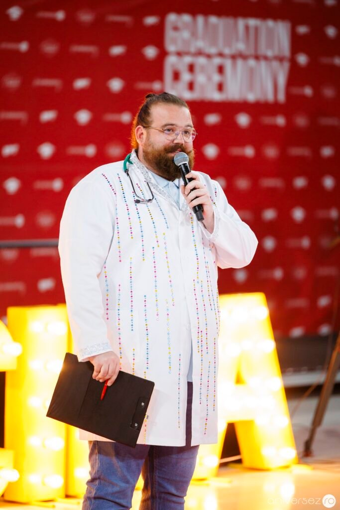 Moderatorul nostru asigură ritmul și atmosfera evenimentului, menținând energia publicului și fluiditatea momentelor de pe scenă, pentru ca fiecare clipă a festivității să fie memorabilă.