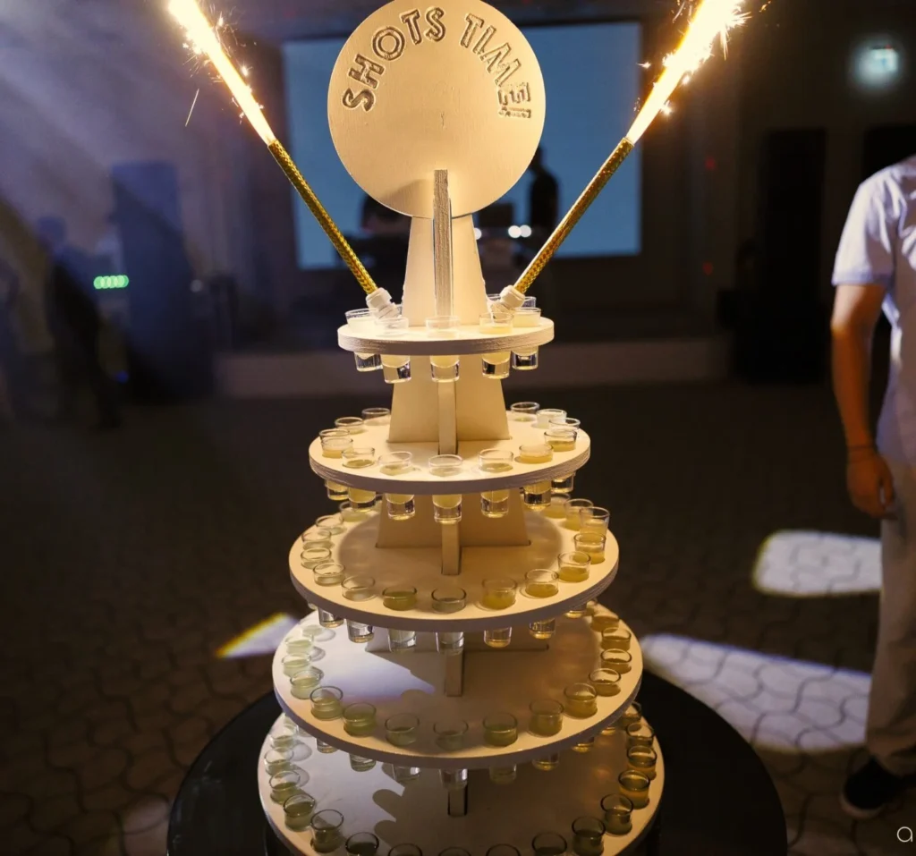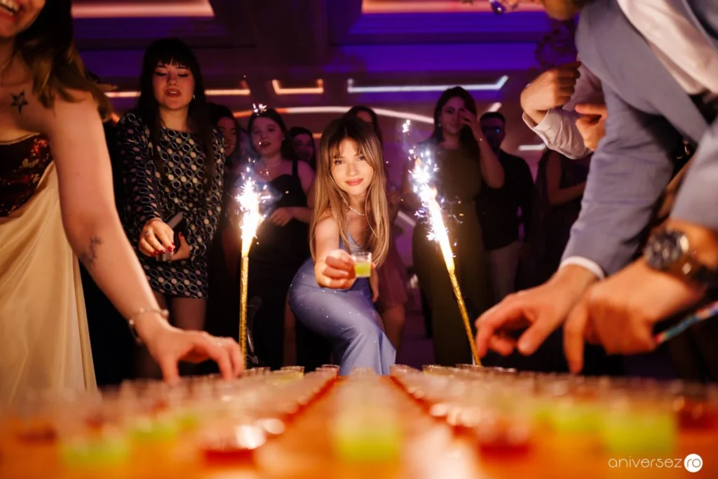 Roaba cu shot-uri de la banchet este un element inedit, care conține 86 de shot-uri și este înconjurată de artificii, oferind astfel un moment special pentru a sărbători alături de colegi.