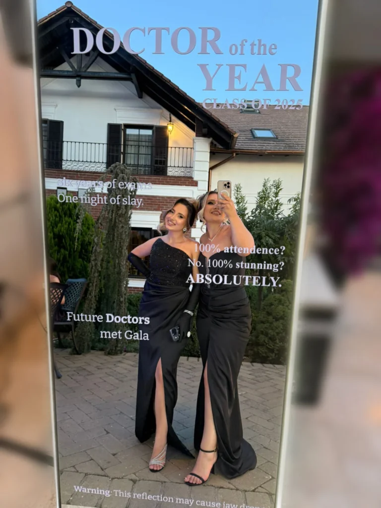 Beauty Corner-ul este locul special amenajat pentru ca voi să arătați impecabil în ziua Absolvirii. Aici veți găsi o echipă dedicată care vă va ajuta să aranjați roba — fie cu fundă, fie cu nod de cravată — și să fixați toca cu agrafe, astfel încât fiecare detaliu să fie perfect pentru ceremonie și poze.