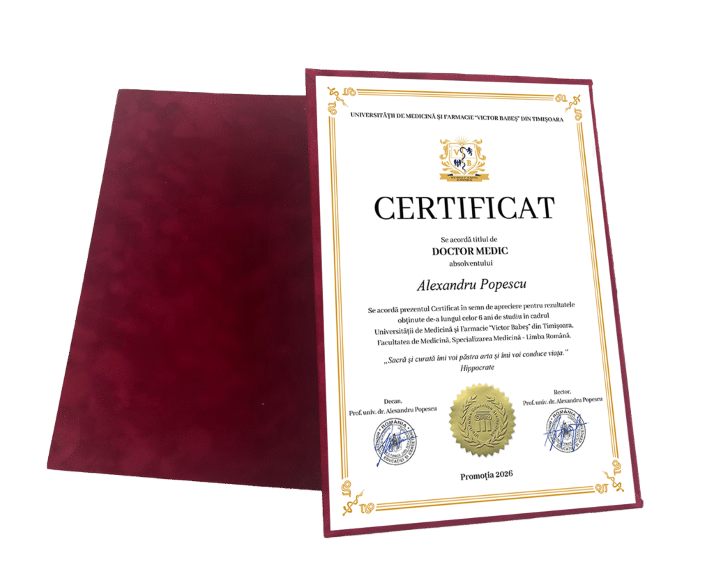 Certificatul de absolvire are acum un nou design: este realizat pe hârtie crem, la care se adaugă ramă folio de jur împrejur. Pe lângă caracteristica de unicitate, aplicarea și embosarea etichetelor aurii conferă certificatului un aspect elegant, deosebit.