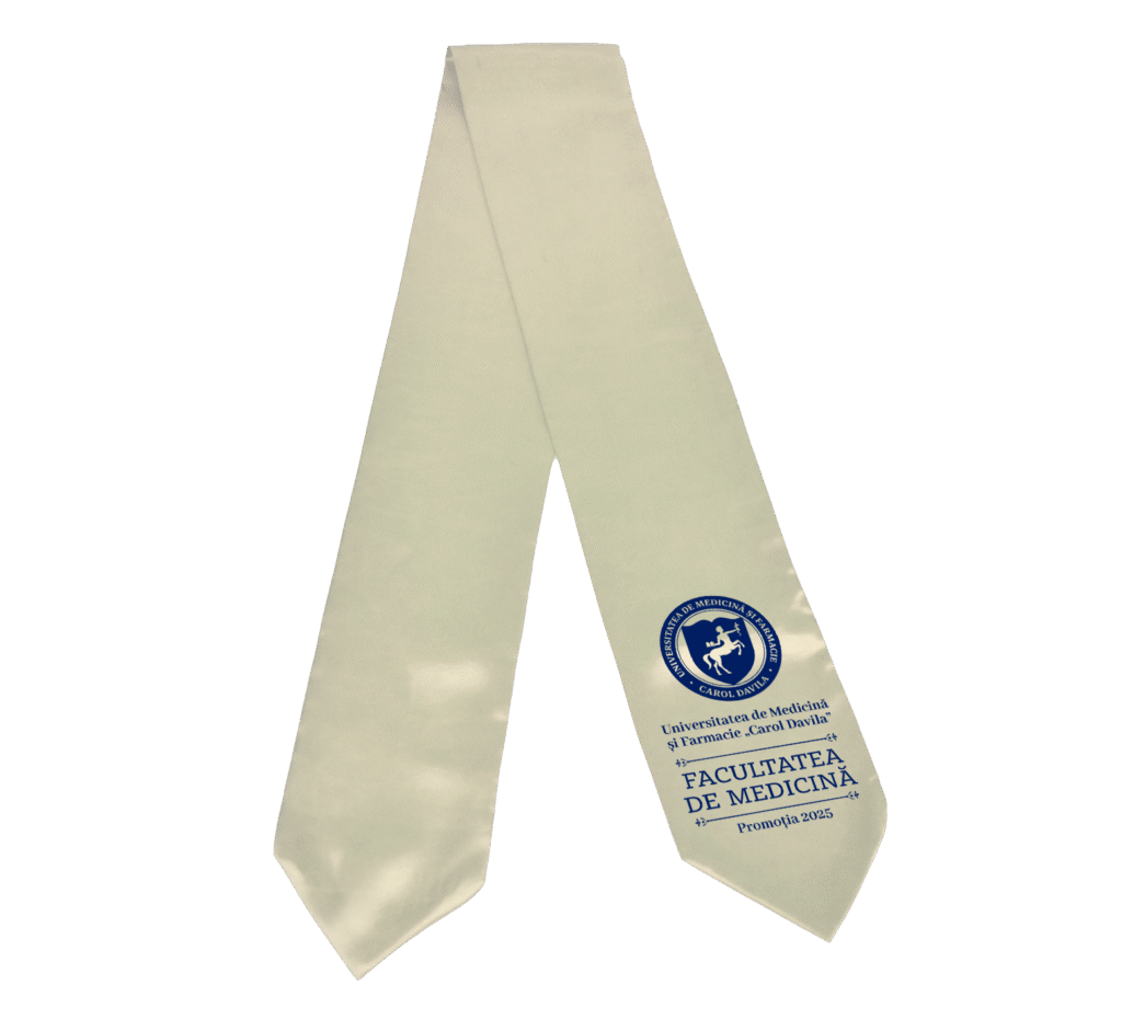 Confecționat din materiale de calitate superioară, ecusonul are un design rafinat, menit să reflecte profesionalismul și prestigiul academic.