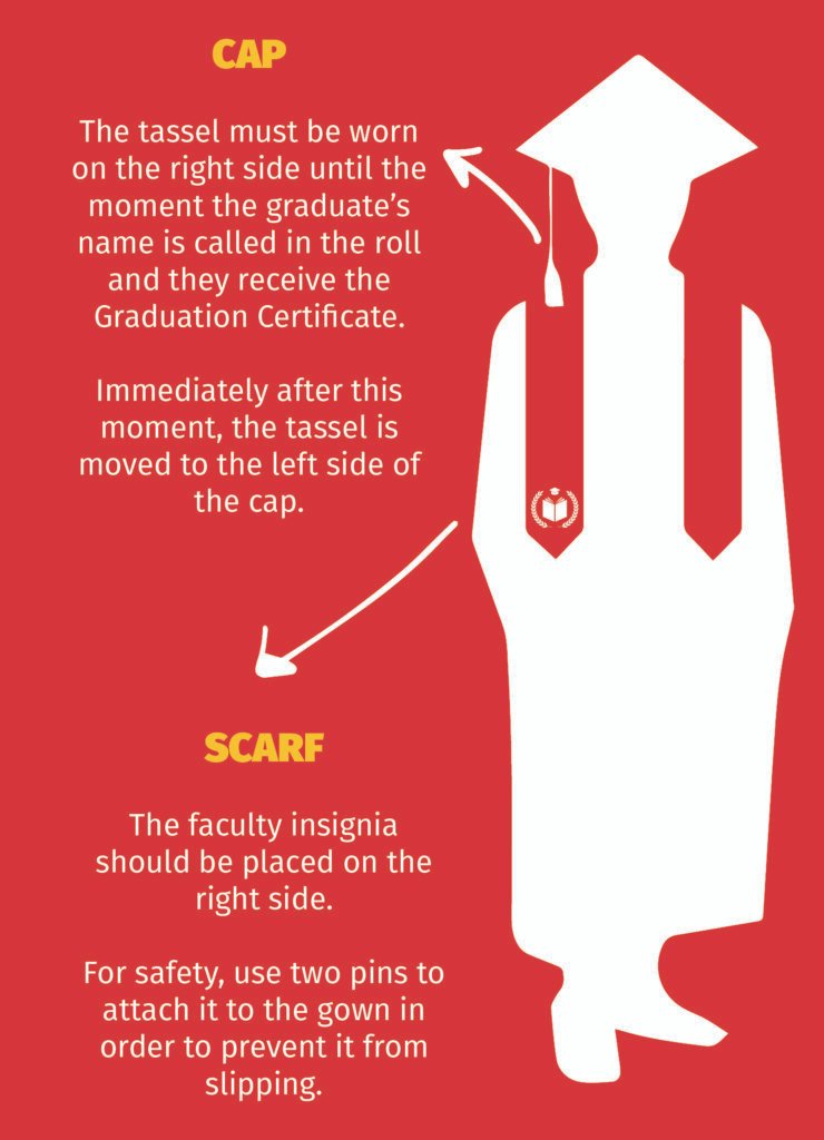 It can be rented or purchased & it is available in several sizes. Its design highlights the graduate's outfit. The robe is equipped with 2 ribbons that can be attached as a bow or tie (differentiating element).