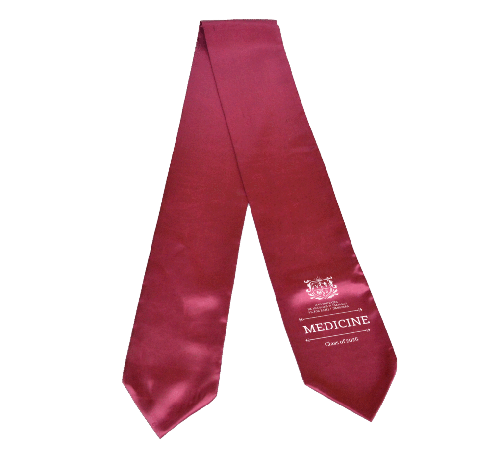 Made of double satin, the scarf is available in several colors. It can be personalized by thermal transfer or screen printing, and its color will match that of the ribbon and tassel.