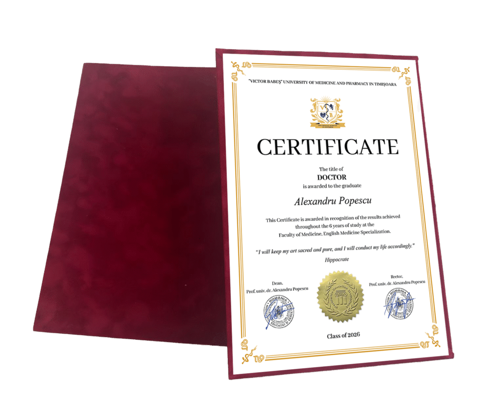 Everything goes smoothly when things are in place! The graduation certificate has taken on new clothes: placed on a velvet stand, the Certificate becomes easy to carry, but also easy to present to friends. The velvet from which the support is made enhances the elegance of the Certificate.